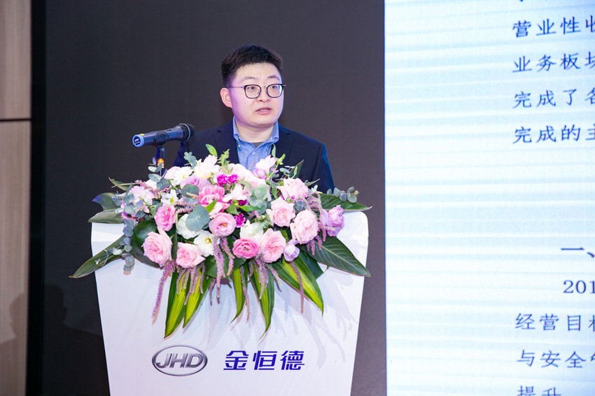 集團(tuán)副總裁周智恒先生作《肩負(fù)使命 共譜新篇——2019年度集團(tuán)工作總結(jié)及2020年度工作計(jì)劃》報(bào)告,全面總結(jié)了過(guò)去一年完成的各項(xiàng)工作,充分肯定了集團(tuán)各板塊取得的卓越成績(jī),并就2020年集團(tuán)重點(diǎn)工作作出部署與安排。周總強(qiáng)調(diào),目前金恒德集團(tuán)仍處于轉(zhuǎn)型升級(jí)、攻堅(jiān)克難的關(guān)鍵時(shí)期,2020年是集團(tuán)發(fā)展做強(qiáng)做優(yōu)的重要一年,為此提出全集團(tuán)下一步要圍繞一個(gè)指導(dǎo)思想,實(shí)現(xiàn)兩大目標(biāo),緊抓三大創(chuàng)新產(chǎn)業(yè),做好八項(xiàng)重點(diǎn)任務(wù)。
