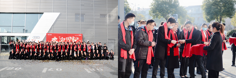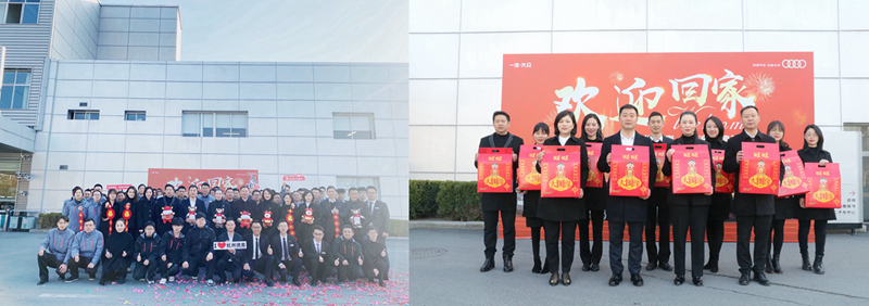 在杭州德奧,汽車(chē)事業(yè)部董事長(zhǎng)莫見(jiàn)忠、汽車(chē)事業(yè)部執(zhí)行總經(jīng)理兼杭州德奧總經(jīng)理沈美琴攜各部門(mén)總監(jiān)給全體員工分發(fā)新年旺旺禮包,寓意在新的一年開(kāi)啟美好的征程。