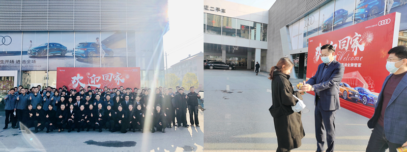 東陽(yáng)德奧執(zhí)行總經(jīng)理張永濤帶領(lǐng)各部門(mén)總監(jiān)聚在大門(mén)口,歡迎每一位順利返程到崗的伙伴,并送上新春的祝福!