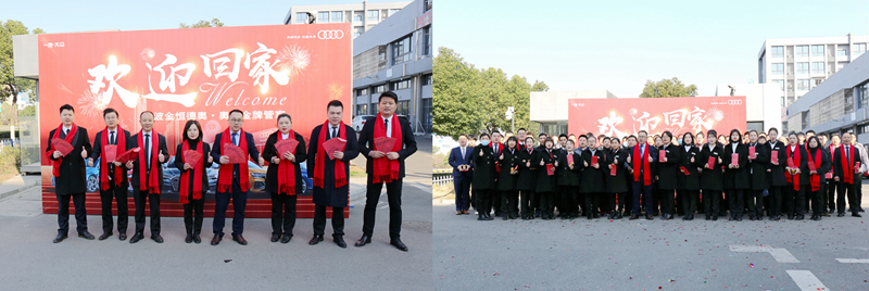 初七清早,汽車(chē)事業(yè)部董事長(zhǎng)莫見(jiàn)忠、汽車(chē)事業(yè)部執(zhí)行總經(jīng)理兼杭州德奧總經(jīng)理沈美琴,杭州城西德奧執(zhí)行總經(jīng)理徐天紅,東陽(yáng)德奧執(zhí)行總經(jīng)理張永濤,桐鄉(xiāng)德奧執(zhí)行總經(jīng)理袁其祥,寧波德奧執(zhí)行總經(jīng)理沈一彪分別攜各店部門(mén)總監(jiān)打響新春第一炮,喜迎新春開(kāi)門(mén)大吉。