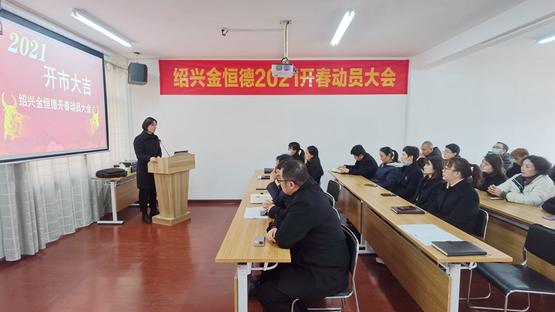 為統(tǒng)一員工的思想,共謀良策大計,布好局,鋪好路,打好2021年第一仗,中午,紹興金恒德全體員工在三樓會議室召開了新春動員大會。
