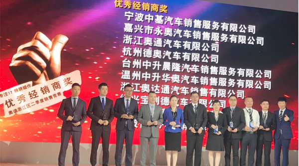 杭州德奧獲得奧迪浙江區(qū)銷售競賽優(yōu)秀經(jīng)銷商獎的榮譽。此殊榮是對杭州德奧2017年上半年努力和奮斗最好的肯定。