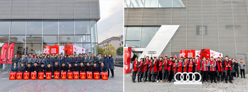 在清早初陽的照耀下,杭州德奧、杭州城西德奧、東陽德奧、桐鄉(xiāng)德奧各店管理團(tuán)隊(duì)迎接員工返崗開工,并為員工送上新春祝福。 各4S店管理團(tuán)隊(duì)在開工第一天,整齊劃一,列隊(duì)歡迎每一位順利返程到崗的伙伴,以暖心的“新年好”送上新春的祝福!燦爛的笑容、真摯的祝福、暖心的禮物,都是德奧溫情的傳遞,更是對(duì)新年美好的期待與鼓勵(lì)。在陽光的輝映下,禮炮絢爛,小伙伴們?nèi)莨鉄òl(fā),以飽滿的龍馬精神,聚力開啟美好征程。