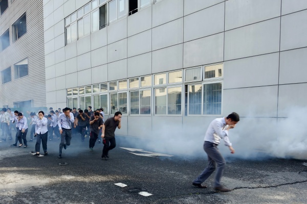 理論培訓結束后,新入職員工率先操作,按照 “一搖二拔三瞄四壓” 的操作要領,迅速撲滅演練火情。隨后,其他員工也積極參與實踐操作,將所學知識應用于實際。在應急疏散逃生演練環(huán)節(jié),隨著煙霧釋放、警報聲響起,全體員工嚴格依照消防應急預案與火災現(xiàn)場疏散要求,捂住口鼻、彎腰低姿,有序完成疏散逃生,整個過程規(guī)范高效。