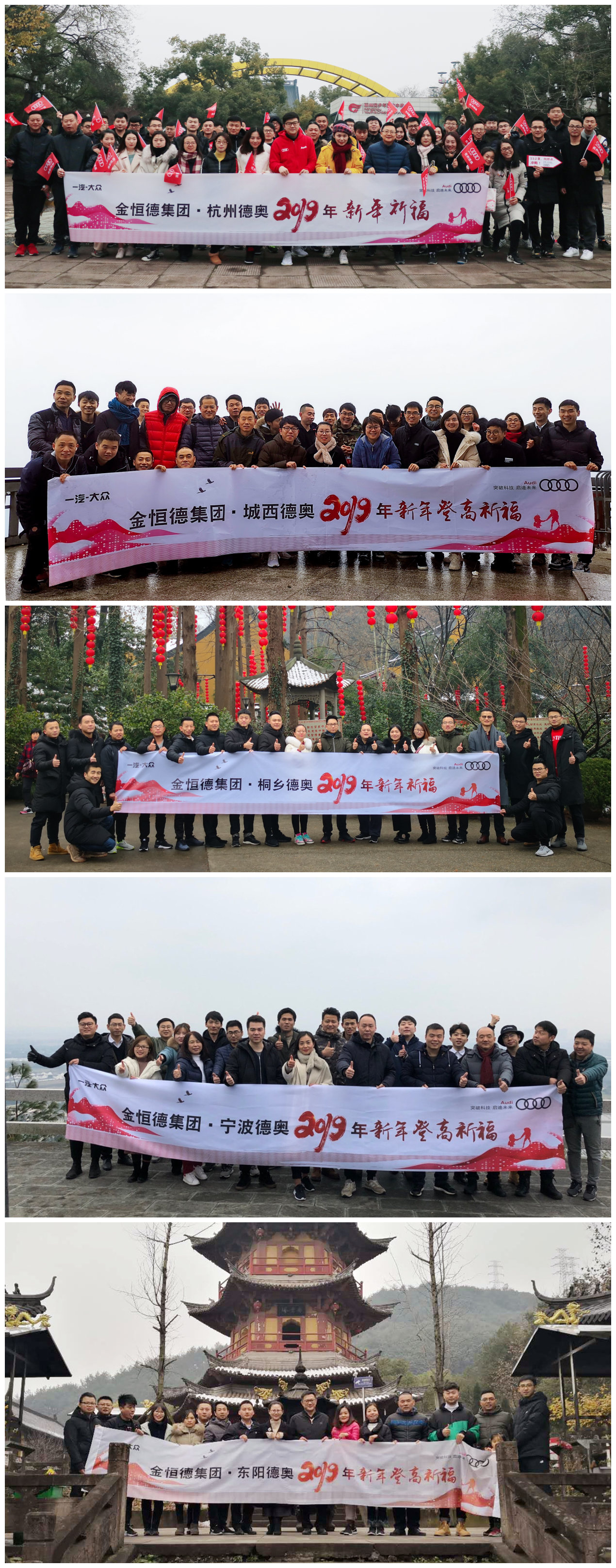 2019年新年第一天,為了在新年里討一個(gè)好彩頭,祈福汽車事業(yè)部在新的一年里業(yè)績(jī)節(jié)節(jié)攀升,各4S店紛紛組織新年祈福活動(dòng),或登高遠(yuǎn)望,或環(huán)湖祈福。當(dāng)天大早,天未亮,人已在征途。各公司員工不畏嚴(yán)寒,踏著2019年第一場(chǎng)瑞雪,登高環(huán)湖,用不同的方式表達(dá)對(duì)2019年的期許,祈福金恒德汽車事業(yè)部大家庭在新的一年里順風(fēng)順?biāo)樖隆?/span>